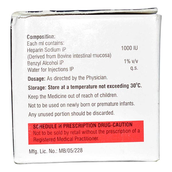 Salt/Formula: Heparin sodium (5000IU)