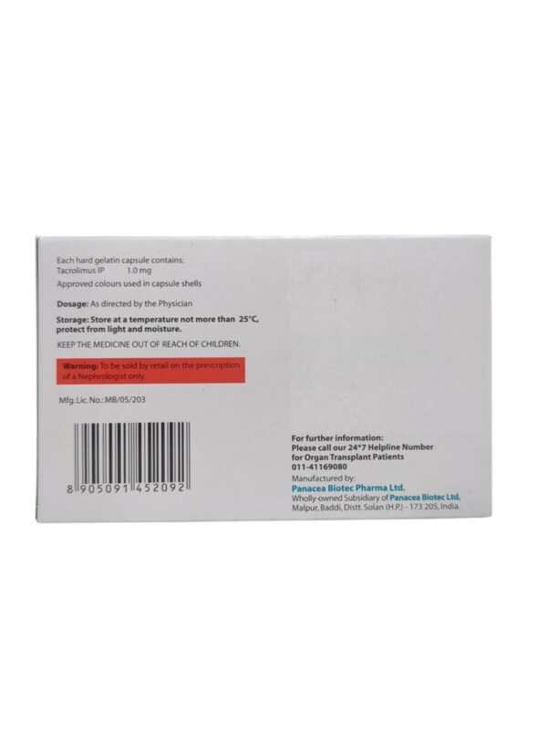 Salt/Formula: Tacrolimus (1.0mg)